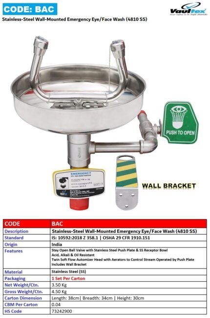 ABS Emergency Wall-Mounted Eye/Face Wash Station