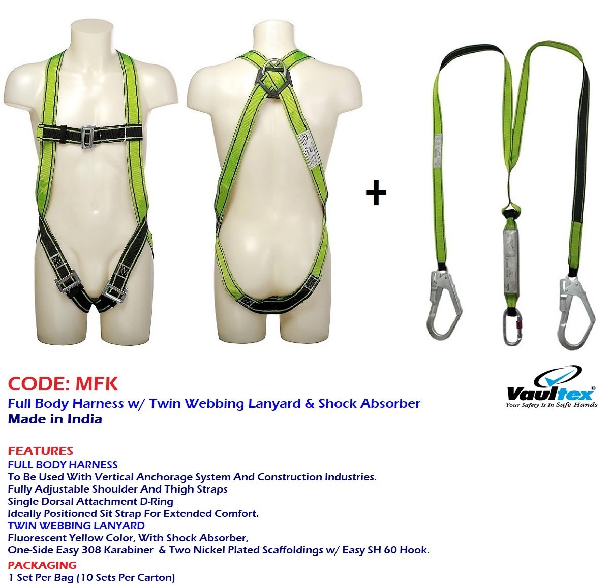 Fluorescent Green/Black Full-Body Harness to be Used with Vertical Anchorage System & Construction Industries.